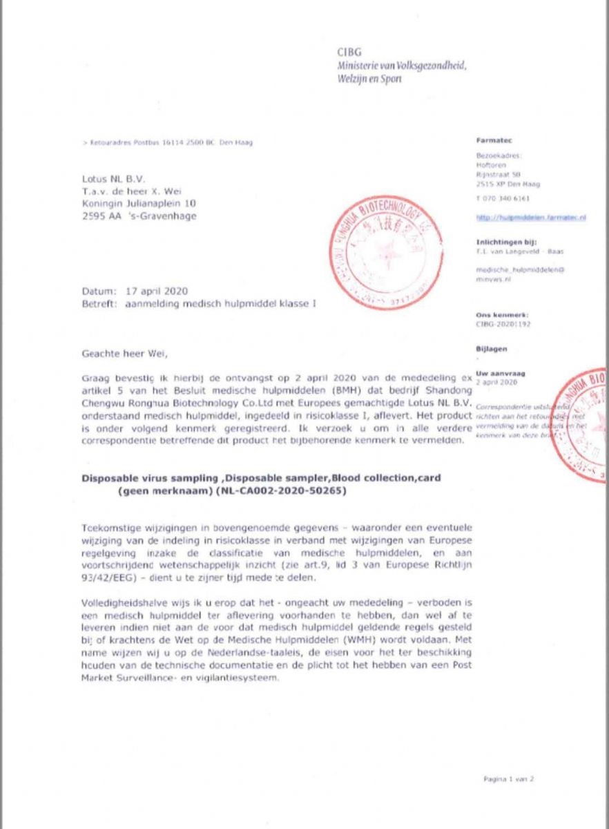 1. 我公司新冠病毒檢測采樣試劑盒完成CIBG荷蘭注冊(cè)我公司新冠病毒檢測采樣試劑盒完成CIBG荷蘭注冊(cè)